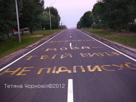 "Напроти Межигір’я я написала "Янукович, мова – твій вирок, не підписуй". На дорозі жовтою фарбою. Літери були напевно метрові", - розповіла Тетяна.