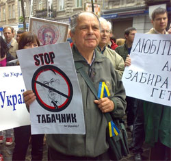 «Ми вийшли на пікет, щоб показати Януковичу, що Україна ніколи не буде Малоросією і ще раз заявити про свої вимоги щодо денонсації «харківського пакту» і недопущення русифікації України», - сказав він.