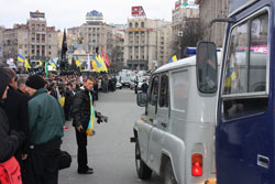 Після того, як мітингуючим вдалося перекрити рух по Хрещатику, правоохоронці, узявши їх у щільне кільце, зуміли частково розчистити дорогу, але такі дії міліції спровокували ще більшу кількість мітингуючих вийти на дорогу. У найбільш активних з них виникла бійка з правоохоронцями.