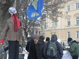 У свою чергу, львівська Свобода провела акцію протесту Захисти рідну мову. Акція відбулась біля пам'ятника Івану Франку. "Під час акції молоді свободівці здійснили студентський суд над українофобом "Дімою Сабачніком". Суд прийняв одностайне рішення - повісити", - повідомляє прес-служба партії.