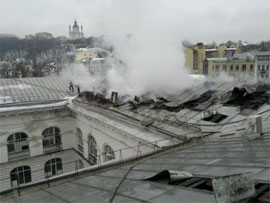 Як повідомлялося ранше, в ніч на 9 лютого в будівлі Гостинного двору в Подільському районі Києва в горищному приміщенні виникла пожежа на площі 200 кв. м.