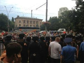 Як заявляє міліція, попри роз’яснення працівників МВС дехто з мітингувальників "з застосуванням фізичної сили намагались проникнути на територію райуправління", "пошкодили кілька секцій металевого паркану", а після того "застосували сльозогінний газ проти правоохоронців".