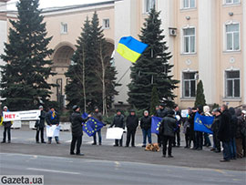 Останній факт зібрав під стінами Донецької обласної податкової адміністрації терміновий пікет евромайданівців. Близько 20 осіб впродовж часу кричали: "Разом ми сила!", "Разом і до кінця!", "Ні політичним репресіям!".