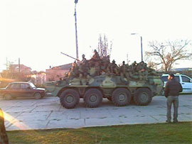 Периметр частини оточений. Дорога до частини перекрита 2 БТРами і двома десятками солдатів РФ. В будівлі казарми сильне задимлення.