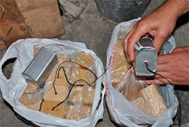 Під час обшуку гаража, що належить правопорушникам, правоохоронці вилучили п’ять саморобних вибухових пристроїв загальною вагою 7,6 кг, вибухову речовину – гексаметилентритероксиддіамін для виготовлення детонаторів, самі детонатори, годинникові механізми, елементи живлення, газовий пістолет, маски.