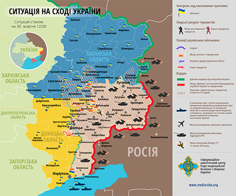 Терористи з «градів», артилерії, танків та мінометів обстріляли позиції сил АТО на північно-західному периметрі околиць Донецька та Донецького аеропорту. Аеропорт залишається під контролем наших бійців.