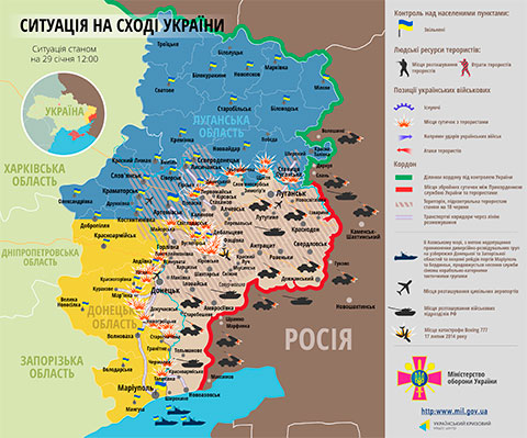 Як повідомив сьогодні на брифінгу речник АТО полковник Андрій Лисенко, по всій лінії розмежування незаконні збройні формування інтенсивно обстрілюють позиції українських військ та проводять розвідку боєм з метою відтягування резервних сил української армії. Російсько-терористичні угрупування проводять передислокацію сил у напрямку міст Дебальцевого та Маріуполя, накопичують особовий склад та техніку у ряді населених пунктів Новоазовського району. Також, за даними розвідки, ватажки бандформувань здійснюють спроби проведення так званої «мобілізації» мешканців м. Горлівка.