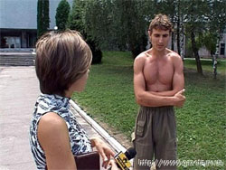 У кишені в Олега Шинкаренка — лише дві гривні, паспорт, мобільний телефон та зарядний пристрій до нього. Босі ноги та мінімум одягу. Свою акцію він так і назвав — “Гола правда”.