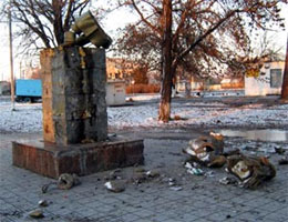 «Співробітників міліції, які виїхали на місце події, приголомшила картина. Монумент заввишки 3,5 м, вилитий з монолітного бетону і забарвлений під колір бронзи, не просто містив механічні пошкодження: фігура батька пролетаріату була жорстоко розбита. Пошкоджені частини знаходилися неподалік від пам`ятника», – сказали в ЦГЗ.