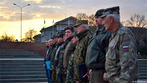 Ці люди вимагають, щоб їх офіційно називали "Народне ополчення Криму", але в побуті кримчани і надалі вживають слово "Самооборона". Саме так називались добровольчі загони, які в березні 2014 року брали участь у проросійських мітингах в Сімферополі та штурмували військові частини: "Виглядало це так, - розповів DW незалежний кримський журналіст Ілля Воронін (ім’я змінено. - Ред.), - першими вламувалися загони "Самооборони", без зброї, а услід за ними - озброєні люди без знаків розрізнення - російські військовослужбовці".
