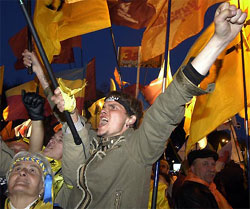 А тепер стосовно нинішнього стану українського політикуму. Для поточного моменту характерне сміхотворне мавпування «голубими» і «червоними» помаранчевого Майдану і Помаранчевої революції. Всім відомо, що історія може повторюватися лише у формі фарсу. Головна і докорінна відміна пома-ран-чевого Майдану від майдану «червоно-голубого» в тому, що перший був справжній, а другий — повністю бутафорський. Ні в Росії, ні «голубі», ні «червоні» так нічого і не второпали, напевно, через «проффесорський» рівень інтелекту. У них донині в голові увесь той маразм стосовно «американських» валянків і «наколотих» апельсинів. Валянки, панове-товариші, американськими просто не бувають. Як не бувають, скажімо, українськими лапті. Їх не існує у природі! Це чисто російські елементи культури. І саме зараз вони не на ногах, а в головах «коаліціантів».