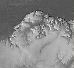 Низини пофарбовані більш темним кольором, пагорби і височини - світлим. А в цілому все це дуже нагадує обриси людської голови.